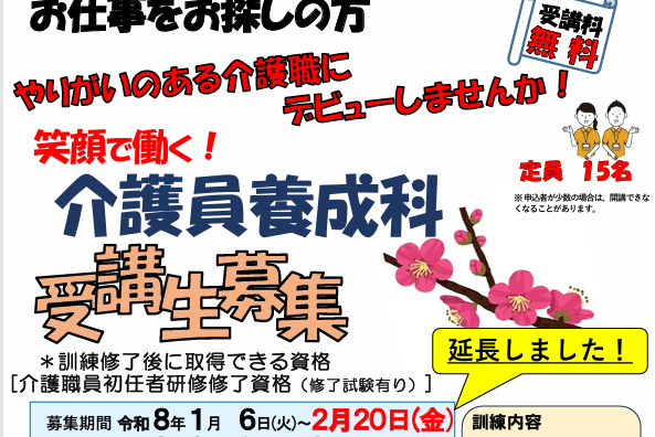 エニウェイでは、R8年4月開講の通信制「介護職員初任者研修」受講者を募集中です!